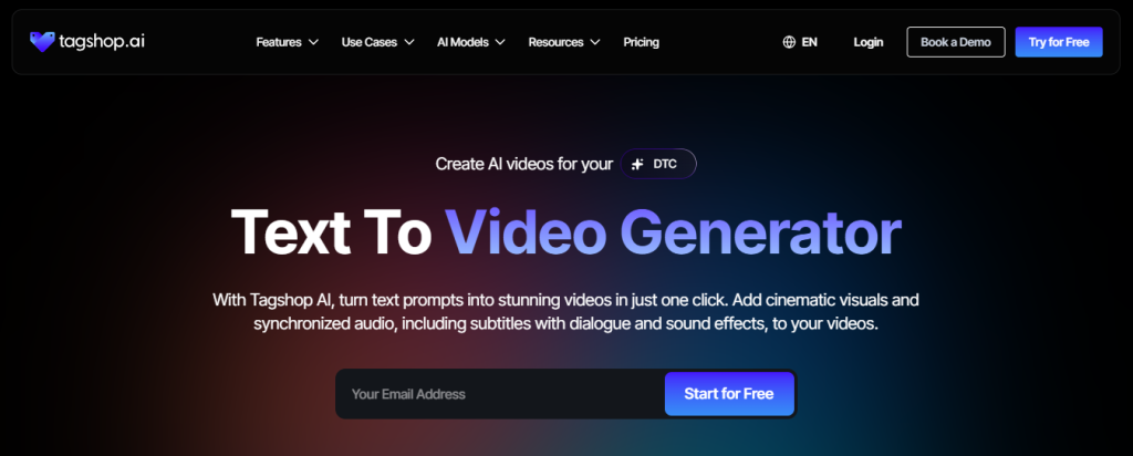 Tagshop is one of the top AI text to video generators in the industry. This tool is designed for performance marketers to generate AI-generated ads, avatar-based videos, and other video creation features.