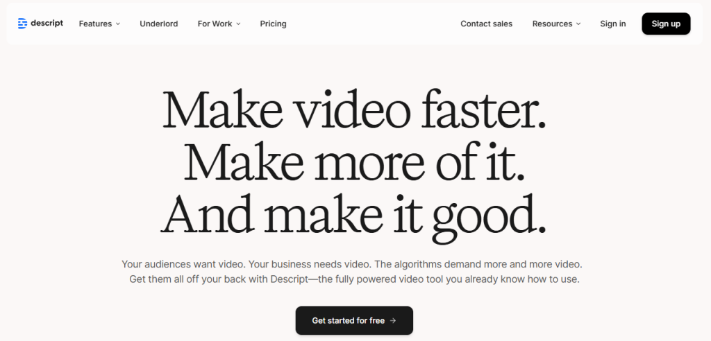 Descript AI is a feature-rich platform with an easy user interface, automated design tools, smooth integration, and editing capabilities.