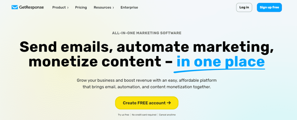 GetResponse is the AI-driven email and automation platform that helps businesses grow smarter on the channels they own – with unlimited sends, transparent pricing, and powerful ecommerce-ready automation.