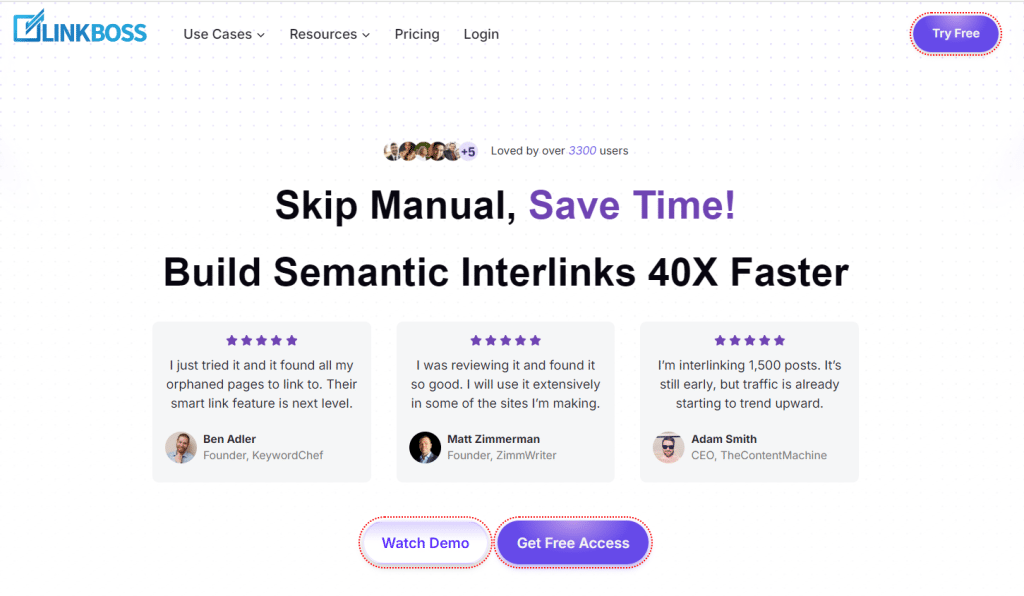 LinkBoss suggests semantically relevant articles and anchor texts with a precision that’s impossible for VAs to match. It handles everything from manual inbound/outbound linking to SILO networks and bulk interlinking.