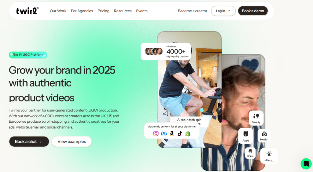 Twirl is a modern brand agency that empowers brands to enhance their marketing via a network of vetted UGC creators and drive growth. With 4000+ content creators across the UK, US, and Europe, this UGC creator agency gives jaw-dropping creative for your ads, websites, emails, and other social channels.