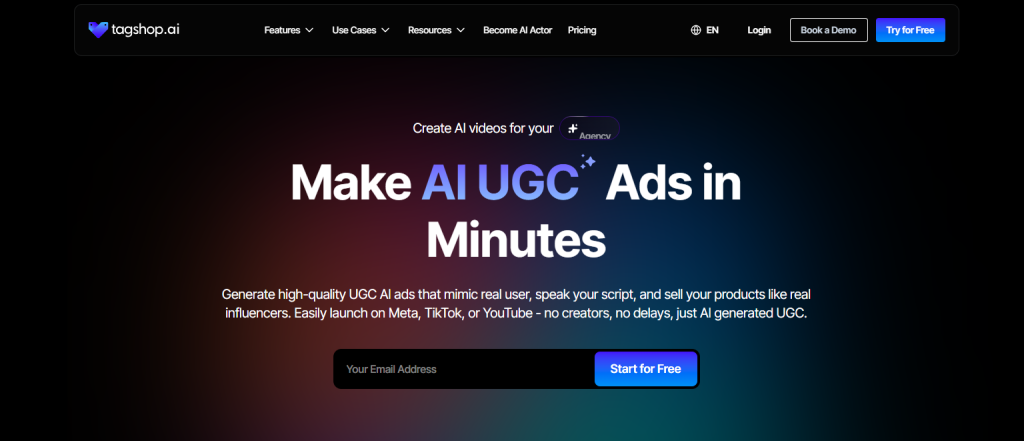 Tagshop AI is one of those tools that quietly surprises you. At first glance, it looks like a video marketing platform, but once you dig in, it is heavily focused on AI-powered video creation for brands and marketers. Unlike Venngage, which leans more toward static visuals, Tagshop AI is more about realism, motion, and videos that actually convert. It helps businesses turn plain text, script, image, or product ideas into engaging videos using hyper-realistic AI avatars. It is especially useful for ecommerce and ads where speed matters, and budgets are affordable.